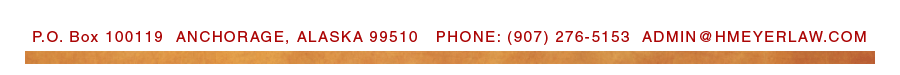 Howard J. Meyer, Jr. is an Alaskan who since 1987 has been proud to serve Alaskans from all over the state with professional legal service. The legal system is designed to give everyone an equal chance. Hard working, honest individuals can often find themselves dealing with painful injuries, rising medical bills and other challenges, even when other people are responsible. A personal injury lawyer can help you hold those parties accountable for their actions - or inaction - and help you feel confident about the recovery process.